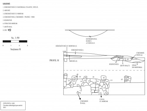 În campania 2021 s-a continuat lucrul în porțiunea nord-estică a secțiunii SI (10 m x 2,00 m), pornind de la peretele ultimelor încăperi ale conacului Zarifopol descoperit în 2020. A fost degajat molozul din încăperea conacului punându-se în evidență peretele de V, realizat preponderent din piatră și puțină cărămidă, tencuit, cu urma unei deschideri, acum astupată de dărâmătură, precum și un fragment din peretele sudic, de asemenea cu o deschidere către încăperea alăturată spre sud. Zidul de E a fost demantelat până la cota pardoselii din ciment. Se observă că fragmentul de temelie a acestui zid este acoperit cu un strat de mortar, nivelul de la care acesta a fost aplicat pe zidărie fiind evident. El reprezintă nivelul de călcare al refacerii conacului, faza Zarifopol. Nu a fost degajată de sub dărâmături partea de N a încăperii. Este de notat stratul gros de tencuială prezent pe toate fragmentele de zidărie dezvelite, rezultat al unor refaceri succesive.