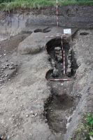 - 0,40 - 0,90 m: strat medieval-modern de culoare cenuşie, constând din pământ amestecat cu pietriş şi conţinând fragmente ceramice medievale şi moderne, precum şi resturi de materiale de contrucţii (ţigle, cărămizi);