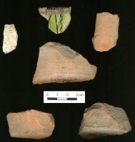 Evident predomină materialul ceramic, exclusiv lucrat la roată. Cea mai mare parte o constituie fragmentele lucrate din pastă de culoare cărămizie, mai puţine fiind cele gri, cu nisip fin în compoziţie, utilizat ca degresant. Ceramica este arsă oxidant pe ambele suprafeţe exterioare, miezul rămânând cenuşiu, mai evident în cazul primei categorii. Mai rare sunt fragmentele ceramice smălţuite pe o singură parte, foarte fragmentare, în general atipice. Predomină întrucâtva cele de nuanţă galben-verzuie, ornamentate cu dungi maronii, drepte, arcuite sau vălurite. Marea majoritate a materialului prezintă urme de ardere secundară.