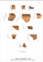 În orice caz materialul este destul de bogat pe o suprafaţa destul de mică. Majoritatea fragmentelor aparţin vaselor lucrate la roata rapidă, arse la negru, uneori cu dimensiuni apreciabile (vase de aprovizionare), dar apare şi ceramica foarte fină tot din pastă neagră. Aceste vase erau acoperite de capace negre şi roşii.