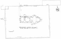 Gropile mormintelor au tăiat nivelul de construcţie al bisericii şi conţin în umplutura gropilor materiale de construcţie din nivelul de construire şi primul nivel de refacere. Şi aici a fost din nou surprins un consistent nivel preistoric, fără a fi determinată prezenţa vreunui complex arheologic. Fundaţia bisericii este unitară la nivelul celor două componente arhitectonice şi prezintă un umăr de fundaţie lat de 0,12/0,15 m, neuniform ca lăţime, aflat la -2,44 m (faţă de waagriss) şi retras succesiv din asizele de cărămizi. Soclul, realizat din aceleaşi asize de cărămizi ca şi fundaţia, este netencuit pe o înălţime de 0,55 m, la 0,08 m sub nivelul de călcare actual prezentând urmele unei tencuieli de epocă.