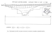 Stratigrafia şanţului de apărare a castellum-ului: la partea superioară adâncimea actuală a chiuvetei la care m-am referit era de 1 m, iar lărgimea de 9 m. După adâncirea secţiunii până la baza şanţului antic s-a constatat următoarea situaţie: şanţul antic a avut două taluzuri, cel de la partea superioară avea înclinaţie de 25°, iar la partea inferioară era de 45°. Baza şanţului era la 2,85 m.