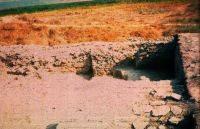 Podeaua de lut menţionată anterior reprezintă al patrulea moment identificat în săpătura noastră. În măsura în care ea se lipeşte de reparaţia cu pământ a unei superbe construcţii mai vechi, acest moment ar putea fi asimilat nivelului II B, în timp ce o altă podea, aflată la -1,22 m (lipindu-se de aceeaşi reparaţie şi reprezentând deci al cincilea moment), ar putea fi asimilată nivelului II A. De notat apariţia pe acest nivel, în jumătatea vestică a secţiunii, a urmelor unor vetre, cea mai concludentă dintre ele fiind cea descoperită la 0,5 m E de plinta construcţiei mai vechi (vezi mai jos). Ea are dimensiunile de 0,7 x 0,7 m şi în afară de pigmenţii de arsură i se conturează şi amprentele pereţilor. Din ea şi din jurul ei au fost recoltate numeroase fragmente de zgură de fier, ceea ce ar putea indica existenţa aici a unei forje pentru prelucrarea fierului (?). Acelaşi lucru s-a constatat şi în extremitatea de NV a secţiunii (în spaţiul dat de diagonala reprezentată de aleea pietruită din faza IV A), unde au fost identificate alte patru urme de vetre, de dimensiuni mai mici. Acestea au apărut de o parte şi de alta a urmelor unui perete de lemn, cu vagi fundaţii din piatră (de 4,3 x 0,3/0,4 m), spaţiul respectiv fiind divizat tot pe diagonală acesta. Amprenta respectivă ar putea reprezenta peretele uneia din încăperile unui atelier de prelucrarea fierului (?). Totodată, merită amintit faptul că în jumătatea estică a secţiunii, corespunzător aceluiaşi nivel, au fost găsite şi câteva oase de animale în curs de prelucrare şi rebuturi ceramice, eventuală dovadă a caracterului artizanal al zonei în a doua jumătate a sec. al III-lea p. Chr. Construcţia de care se lipesc cele două niveluri este, cum spuneam, mai veche, fiind construită din plăci mari de calcar, îmbinate poate la maniera cunoscută în perioada greacă (opus graecum), dar şi în epoca romană timpurie (cum mai avem exemple chiar în cetate), cu o elegantă plintă. Datarea ei atât de timpurie (= ? I C), situaţie în care ar reprezenta al şaselea moment întâlnit în săpătura noastră, nu trebuie să surprindă, câtă vreme acelaşi nivel a fost identificat la Poarta Mare cam la aceeaşi adâncime (cca. -1,5/-1,7 m). Cercetările ulterioare vor avea sarcina să explice, printre altele, diferenţa faţă de acelaşi nivel din săpătura efectuată între anii 1961-1964, aflat sensibil mai jos. Dacă avem însă în vedere că la Terme II se află şi mai jos, o primă explicaţie ar putea să o reprezinte o pantă accentuată către S. Totodată, se urmăreşte eventuala delimitare înspre N a necropolelor din sec. IV-V p. Chr., respectiv VI-VII p. Chr.