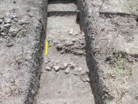 Concret, cercetările din anul 2012 s-au concentrat în colţul de nord-vest al castrului, de o parte şi de alta a turnului pus în evidenţă în campania anterioară2. Am evitat o săpătură în interiorul castrului, în vederea pregătirii terenului pentru operaţiunea de scanare geo-fizică. Castrul are forma unui dreptunghi (170 x 141 m) cu colţurile rotunjite, fapt ce a putut fi verificat şi anul acesta.