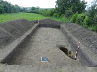 Verificarea anomaliei de pe harta geomagnetică, surprinsă în carourile B1 şi B2, a infirmat presupunerea că în zona respectivă s-ar fi aflat urmele unei locuinţe. Cercetarea a pus în evidenţă urmele a două gropi, dintre care una a putut fi cercetată doar parţial pentru că se afla în profilul nordic al suprafeţei săpate (Fig. 2).