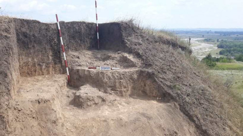 Pe parcursul lunii august din anul 2021 s-a desfășurat a unsprezecea campanie sistematică din situl arheologic de la Roșiori, comuna Dulcești, jud. Neamț, amplasat pe terasa superioară a râului Moldova. De la început ne-am axat pe două aspecte importante: delimitarea nordică a sitului, prin continuarea trasării de secțiuni în respectiva latură și cercetarea buzei surpate a terasei (pentru prima oară avută în vedere). Prin urmare, au fost deschise două secțiuni (notate S.XVIII și S.XIX), dispuse pe buza prăbușită a terasei și o a treia secțiune, în latura de nord (notată S.XVII). Secțiunea S.XVII (orientată NE 200 – SV 2000) a fost trasată în zona unei foste căi de acces a satului, spre nord, mai departe de secțiunile din anii anteriori. Dimensiuni: 16,00m lungime x 2,50m lățime. Stratigrafic, după vegetal, nivelul mai consistent este al dacilor liberi, urmat de cel getic. Din punctul de vedere al complexelor de locuire au fost găsite trei locuințe (PL. I/1), dintre care două suprapuse (una getică, secolele III-II a.Chr., iar alta din veacurile II-III p.Chr.). Ultima locuință a secțiunii aparține tot dacilor liberi. Locuința getică (notată L.1) avea o vatră și un cuptor deservite de o groapă, în care a căzut majoritatea structurii de piatră a cupolei cuptorului. Ceramica lucrată cu mâna (vase borcan, castroane, căni) și celelalte obiecte de lut (precum fusaiolele, lingurile) (PL. II/1), dar mai ales vârful de săgeată scitic, de bronz, în trei muchii, sunt dovezile datării locuinței. Aceasta era suprapusă de o alta (notată L.2), pe podeaua căreia erau pietre (căzute cel mai probabil de la sistemul de fixare al acoperișului; aspect argumentat practic în domeniul etnografic) și ceramică dacică cenușie modelată la roată (vase de provizii, vase borcan, căni, cănițe, străchini, fructiere) (PL. II/2, 3), ultima specifică dacilor liberi. În amestec s-au găsit și fragmente de la amfore romane. Important cantitativ și calitativ a fost și inventarul gropii a doua (notată Gr. 2), în care predomină ceramica modelată cu mâna, care cuprindea vase întregi (cățui, căni) sau păstrate parțial (vase borcan), ulterior restaurate (PL. III) Respectivele artefacte, alături de ceramica găsită în preajma vetrei și în groapa de deservire, sugerează datarea complexului arheologic în secolele II-III p.Chr. Ultima locuință (notată L.3) avea în interior chirpici de la pereți și pietre, probabil căzute tot de la acoperiș. În apropierea vetrei erau fragmente ceramice (inclusiv o cățuie), un cuțit de fier și o mărgică de sticlă verde (PL. II/4-6). Cele două gropi menajere din interior conțineau oase animaliere și ceramică fragmentară din secolele II-III p.Chr. Straturile de locuire din exteriorul complexelor amintite conțineau fusaiole, oase de animale, fragmente ceramice getice, celtice, bastarne și de la dacii liberi. În cazul secțiunilor transversale, deschise pe buza prăbușită a terasei (PL. I/2), putem remarca ca fiind predominant tot nivelul dacilor liberi. În secțiunea S.XVIII (dimensiuni: 4,00m lungime x 2,50m lățime) (orientată NE 600 – SV 2400), pe lângă ceramica caracteristică perioadei s-a găsit un pandantiv tubular de bronz, decupat circular (PL. I/3). Totodată, nivelul conținea și o groapă menajeră cu ceramică lucrată la roată din secolele II-III p.Chr. În ultima secțiune (notată S.XIX, dimensiuni: 4,00m lungime x 2,50m lățime) (orientată NE 500 – SV 2300), s-a descoperit o vatră care avea în preajmă fusaiole, o mărgică de sticlă, un cuțit de fier și o cantitate mare de ceramică modelată la roată (PL. I/4, 5), din veacurile II-III p.Chr. Fotografiile din dronă (PL. IV) sunt sugestive în privința cercetării transversale a buzei, prin intermediul ultimelor două secțiuni menționate. În următoarea campanie ne dorim să continuăm cercetarea buzei surpate a terasei, cu scopul salvării artefactelor, anterior prăbușirii complete a acesteia. De asemenea, dorim să extindem cercetarea nordică a sitului, cu scopul identificării limitei.