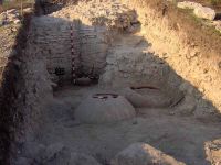 În c.1, la -0,30 m a apărut un nivel compact de tegulae şi olane amestecat cu fragmente de chiup. În secţiune au fost descoperite două chiupuri. Primul a fost descoperit în c.1 spre profilul de E. Se mai păstrează doar baza şi 0,10-0,15 m din elevaţia pereţilor (gr.medie 0,6-0,8 m). În imediata apropiere a acestora, spre profilul de V a apărut o buză de chiup completă de tip inelar provenind probabil de la chiupul numărul 1. Al doilea chiup a fost descoperit în c.2-3, la -0,40 m adâncime şi se păstrează într-o proporţie mai mică decât chiupul nr.1. Spre capătul nordic al secţiunii a fost descoperit un zid orientat NV–SE, alcătuit din blochete mici, legate cu pământ (dimensiunile medii ale dalelor 0,40 x 0,30 m), continuat spre N de un pavaj alcătuit din pietre plate din calcar de Babadag, bine fasonate. Acest pavaj a fost distrus în mare parte de lucrările agricole.
