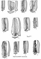 Uneltele de os sunt puţine şi constau din străpungătoare (ace), realizate pe diafize şi şlefuitoare pe metapodale şi astragale de bovine. Cele mai numeroase unelte sunt cele cioplite din silex (671). Din analiza acestora se constată preponderenţa folosirii silexului de Prut (90,46%), urmat de silexul zis "balcanic" (4,77%) şi silexul de Nistru (4,62%). Două piese au fost lucrate din silex central-moldovenesc. Dintre tipurile întâlnite, cele mai numeroase sunt lamele neretuşate şi gratoarele pe lamă. Alături de aceste tipuri principale, în campania din 2003 au mai fost descoperite: lame retuşate, lame cu urme de lustru, lame cu encoche, o lamă cu trunchiere retuşată, gratoare pe aşchii, gratoare duble, un gratoar circular, vârfuri-străpungătoare pe aşchii, neretuşate, vârfuri-străpungătoare pe lamă, retuşate, răzuitoare, vârfuri de săgeată şi suliţă, burine, aşchii retuşate şi neretuşate. Remarcăm descoperirea unor unelte duble, între care o piesă realizată pe o lamă de silex zis "balcanic", care la un capăt este prelucrată, prin retuşe, ca vârf, iar la celălalt capăt ca gratoar. S-au mai descoperit şase nuclee de silex, precum şi patru percutoare realizate din nuclee de silex.
