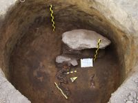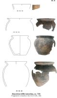 G68 are gura rotundă şi este de tip „clopot"; diametrul gurii=2,00, diametrul bazei=3,10 m, adâncimea= - 3,30 m. Pe fundul gropii, lipite de perete, au fost depuse cinci gâturi de amforă (unele cu ştampile) şi bolovani de calcar. În umplutură au fost descoperite fragmente de kantharoi şi mânere de amforă ştampilate, oase de animale şi de peşte, scoici şi un corn de bovideu. Prezenţa monedelor, a depunerilor de cranii, coarne de animale, fragmente de amforă sau chiar fragmente umane (G73) ne determină să apreciem posibilitatea unei funcţionalităţi cultice a gropilor şi a întregului perimetru cercetat de noi. La acestea adăugăm şi şanţurile de delimitare aflate în partea de N a perimetrului cercetat. Precizăm, că această arie reprezintă numai o parte din cele 4 ha identificate de noi în teren, suprafaţa cercetată fiind delimitată strict de şenalul şoselei de centură. Aşezarea se întinde mai mult către V. Există posibilitatea ca săpătura noastră să se fi desfăşurat într-o arie sacră a acestei aşezări, dată fiind lipsa unor locuinţe, a unor niveluri de călcare, cu tot ce implică aceste lucruri. În lipsa acestora, pare plauzibilă această interpretare. În perspectivă, analiza materialului osteologic ar putea oferi răspunsuri în acest sens.